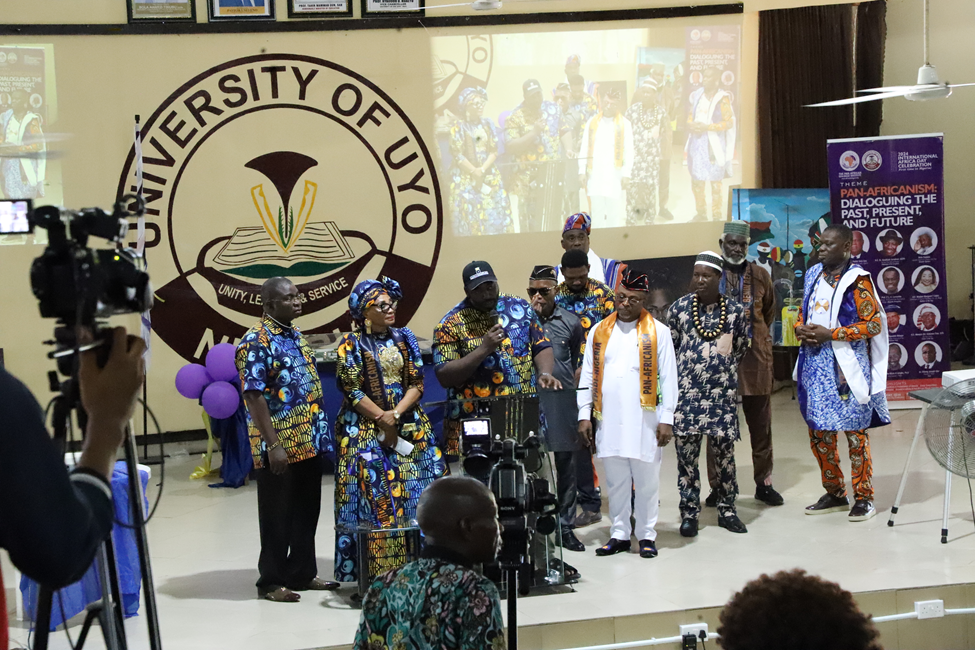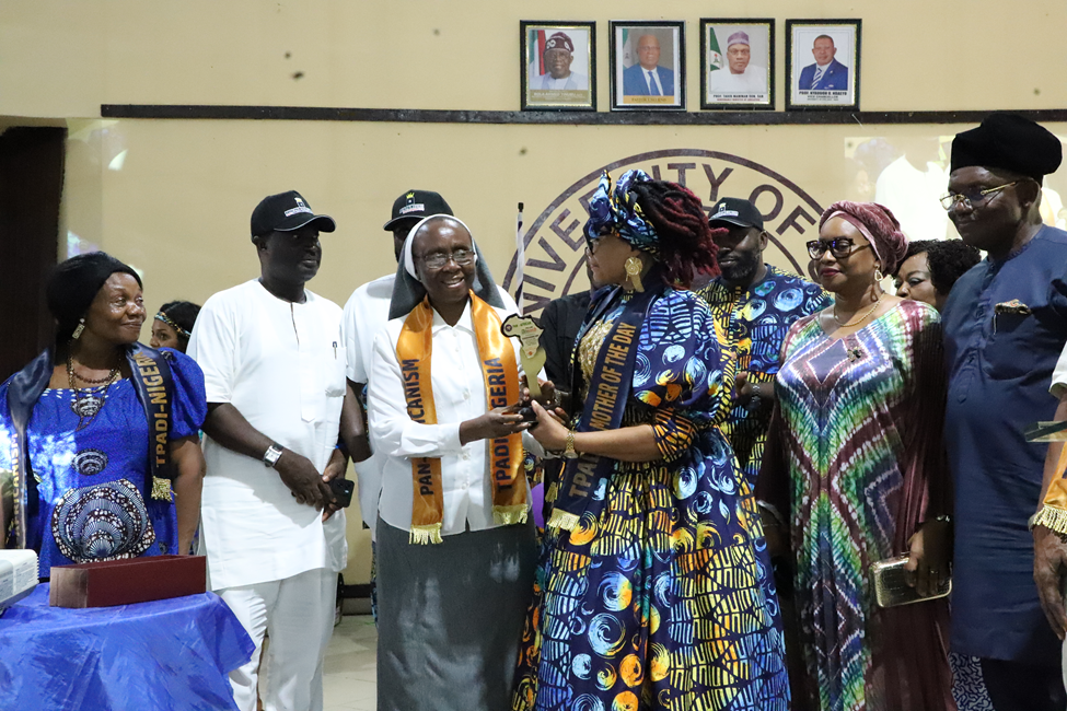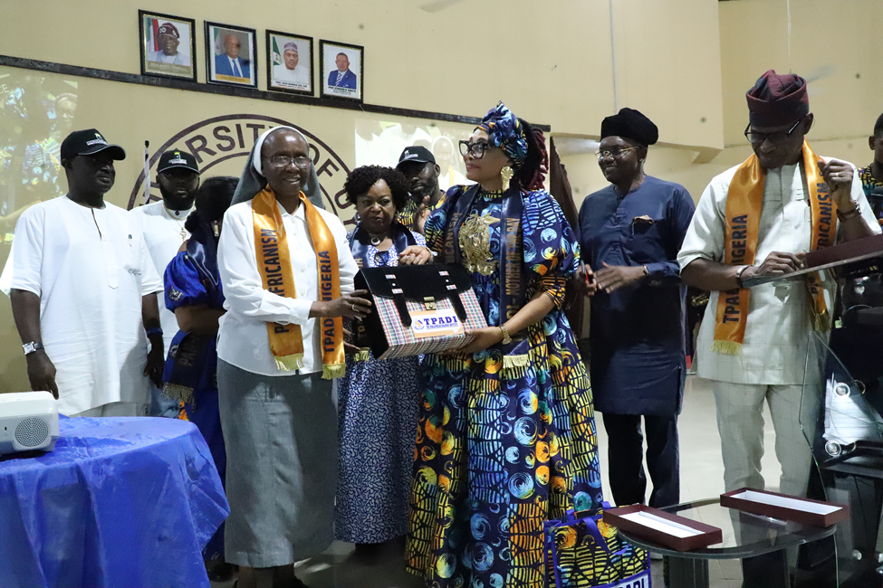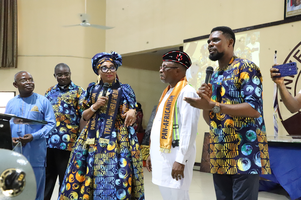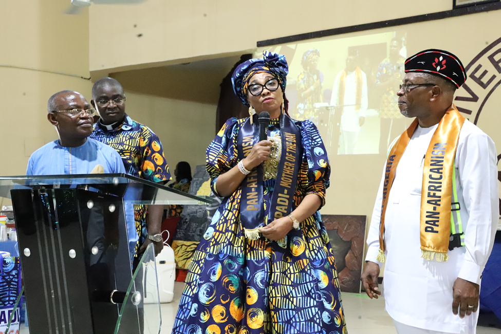 The YRAC chairman, Mrs. Margaret Udoh receiving 2024 PAN-African mother award, and her induction into the Advisory Board of the PAN-African Dialogue Institute, University of Uyo, Akwa Ibom State, Nigeria.
